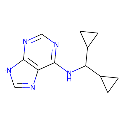 C1=Nc2c(ncnc2NC(C2CC2)C2CC2)[N]1| HBA: | 5 | RingCount: | 4 |