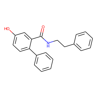 O=C(NCCc1ccccc1)c1cc(O)ccc1-c1ccccc1| HBA: | 3 | RingCount: | 3 |