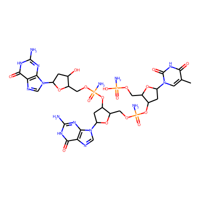 COP(N)(=O)OC1CC(n2cnc3c(=O)[nH]c(N)nc32)OC1COP(N)(=O)OC1CC(COP(N)(=O)OC2CC(n3cc(C)c(=O)[nH]c3=O)OC2COP(N)(=O)O)OC1n1cnc2c(=O)[nH]c(N)nc21| HBA: | 35 | RingCount: | 8 |