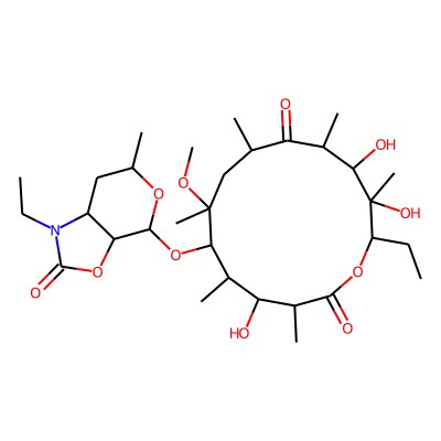 CCC1OC(=O)C(C)C(O)C(C)C(OC2OC(C)CC3C2OC(=O)N3CC)C(C)(OC)CC(C)C(=O)C(C)C(O)C1(C)O| HBA: | 12 | RingCount: | 3 |