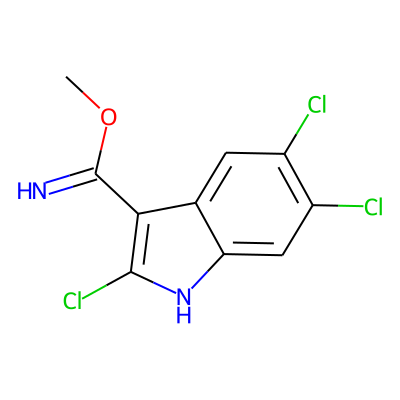 COC(=N)c1c(Cl)[nH]c2cc(Cl)c(Cl)cc12| HBA: | 3 | RingCount: | 2 |