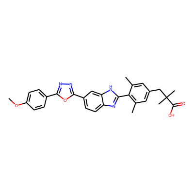 COc1ccc(-c2nnc(-c3ccc4nc(-c5c(C)cc(CC(C)(C)C(=O)O)cc5C)[nH]c4c3)o2)cc1| HBA: | 8 | RingCount: | 5 |