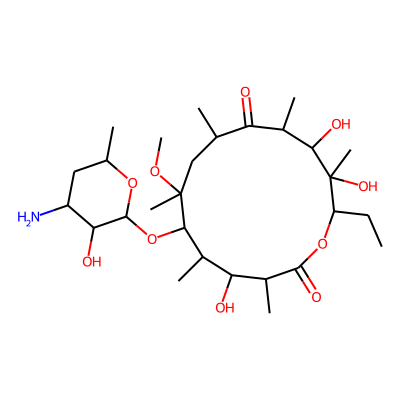 CC[C@@H]1OC(=O)[C@H](C)[C@H](O[C@@H]2C[C@@](C)(OC)[C@H](O)[C@H](C)O2)[C@H](C)[C@H](O[C@@H]2O[C@H](C)C[C@H](N)[C@H]2O)[C@@](C)(OC)C[C@H](C)C(=O)[C@H](C)[C@H](O)[C@]1(C)OAglycone: