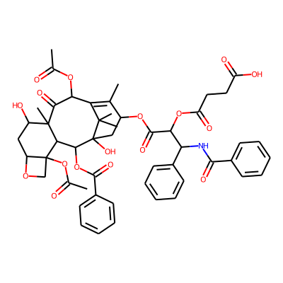 CC(=O)OC1C(=O)C2(C)C(O)CC3OCC3(OC(C)=O)C2C(OC(=O)c2ccccc2)C2(O)CC(OC(=O)C(OC(=O)CCC(=O)O)C(NC(=O)c3ccccc3)c3ccccc3)C(C)=C1C2(C)C| HBA: | 18 | RingCount: | 7 |