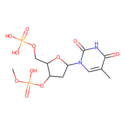 COP(=O)(O)OC1CC(n2cc(C)c(=O)[nH]c2=O)OC1COP(=O)(O)O| HBA: | 13 | RingCount: | 2 |