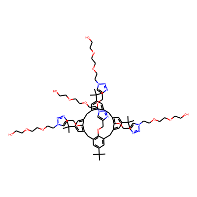 CC(C)(C)c1cc2c(OCc3cn(CCOCCOCCO)nn3)c(c1)Cc1cc(C(C)(C)C)cc(c1OCc1cn(CCOCCOCCO)nn1)Cc1cc(C(C)(C)C)cc(c1OCc1cn(CCOCCOCCO)nn1)Cc1cc(C(C)(C)C)cc(c1OCc1cn(CCOCCOCCO)nn1)C2| HBA: | 28 | RingCount: | 9 |