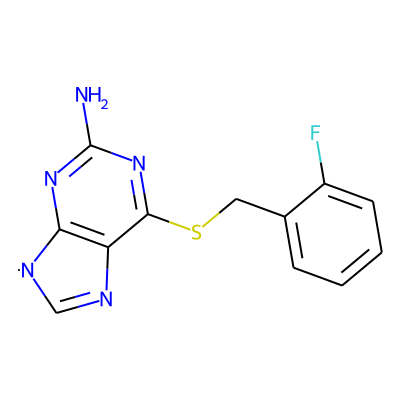 Nc1nc2c(c(SCc3ccccc3F)n1)N=C[N]2| HBA: | 5 | RingCount: | 3 |