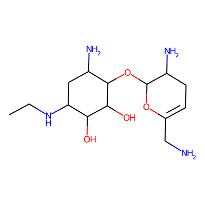 CCN[C@@H]1C[C@H](N)[C@H](O[C@@H]2OC(CN)=CC[C@H]2N)[C@H](O)[C@H]1O[C@@H]1OC[C@@](C)(O)[C@H](NC)[C@H]1OAglycone: