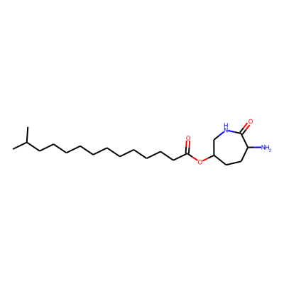 CC(C)CCCCCCCCCCCC(=O)OC1CCC(N)C(=O)NC1| HBA: | 5 | RingCount: | 1 |
