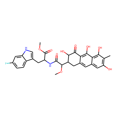 COC(=O)C(Cc1c[nH]c2cc(F)ccc12)NC(=O)C(OC)C1Cc2cc3cc(O)c(C)c(O)c3c(O)c2C(=O)C1OSugarmoiety: