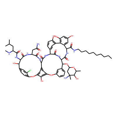 CCCCCCCCCCNC(=O)C1NC(=O)C2NC(=O)C(NC(=O)C3NC(=O)C(CC(N)=O)NC(=O)C(NC(=O)C(CC(C)C)NC)C(O)c4ccc(c(Cl)c4)Oc4cc3cc(c4O)Oc3cccc(c3)C2OC2CC(C)(N)C(O)C(C)O2)c2ccc(O)c(c2)-c2c(O)cc(O)cc21| HBA: | 28 | RingCount: | 10 |