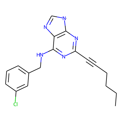 CCCCC#Cc1nc2c(c(NCc3cccc(Cl)c3)n1)N=C[N]2| HBA: | 5 | RingCount: | 3 |