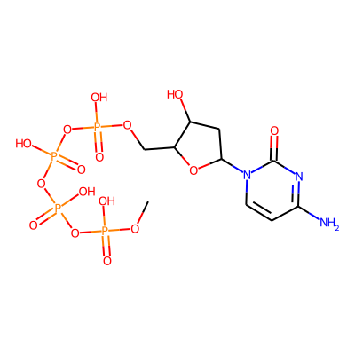 COP(=O)(O)OP(=O)(O)OP(=O)(O)OP(=O)(O)OCC1OC(n2ccc(N)nc2=O)CC1O| HBA: | 19 | RingCount: | 2 |