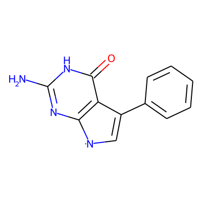 Nc1nc2c(c(=O)[nH]1)C(c1ccccc1)=C[N]2| HBA: | 5 | RingCount: | 3 |