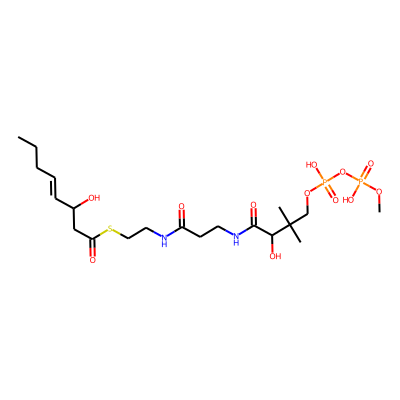 CCCC=CC(O)CC(=O)SCCNC(=O)CCNC(=O)C(O)C(C)(C)COP(=O)(O)OP(=O)(O)OC| HBA: | 14 | RingCount: | 0 |