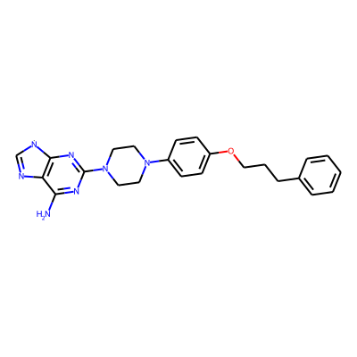 Nc1nc(N2CCN(c3ccc(OCCCc4ccccc4)cc3)CC2)nc2c1N=C[N]2| HBA: | 8 | RingCount: | 5 |