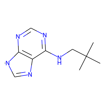 CC(C)(C)CNc1ncnc2c1N=C[N]2| HBA: | 5 | RingCount: | 2 |