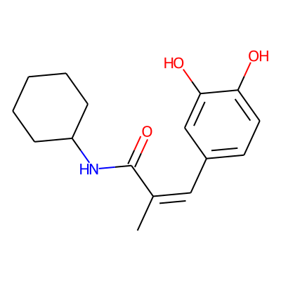 CC(=Cc1ccc(O)c(O)c1)C(=O)NC1CCCCC1| HBA: | 4 | RingCount: | 2 |