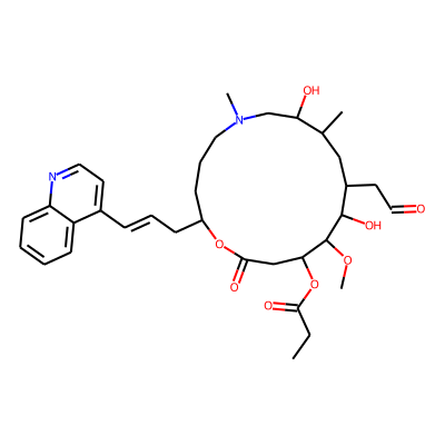 CCC(=O)OC1CC(=O)OC(CC=Cc2ccnc3ccccc23)CCCN(C)CC(O)C(C)CC(CC=O)C(O)C1OC| HBA: | 10 | RingCount: | 3 |