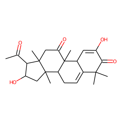 CC(=O)C1C(O)CC2(C)C3CC=C4C(C=C(O)C(=O)C4(C)C)C3(C)C(=O)CC12C| HBA: | 5 | RingCount: | 4 |