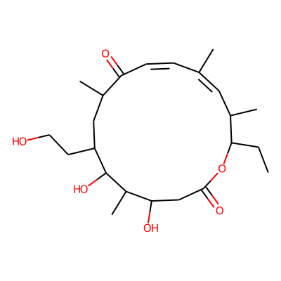 CCC1OC(=O)CC(O)C(C)C(O)C(CCO)CC(C)C(=O)C=CC(C)=CC1C| HBA: | 6 | RingCount: | 1 |