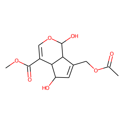 COC(=O)C1=COC(O)C2C(COC(C)=O)=CC(O)C12| HBA: | 7 | RingCount: | 2 |