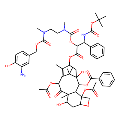 CC(=O)OC1C(=O)C2(C)C(O)CC3OCC3(OC(C)=O)C2C(OC(=O)c2ccccc2)C2(O)CC(OC(=O)C(OC(=O)N(C)CCN(C)C(=O)OCc3ccc(O)c(N)c3)C(NC(=O)OC(C)(C)C)c3ccccc3)C(C)=C1C2(C)C| HBA: | 23 | RingCount: | 7 |