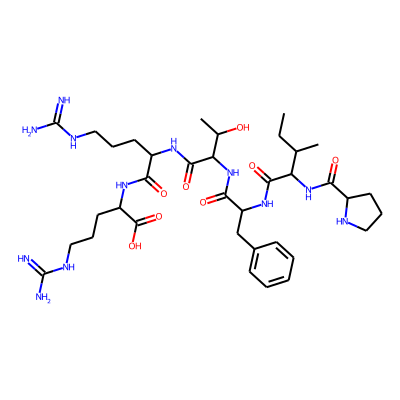 CCC(C)C(NC(=O)C1CCCN1)C(=O)NC(Cc1ccccc1)C(=O)NC(C(=O)NC(CCCNC(=N)N)C(=O)NC(CCCNC(=N)N)C(=O)O)C(C)O| HBA: | 20 | RingCount: | 2 |