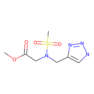 COC(=O)CN(CC1=C[N]N=N1)S(C)(=O)=O| HBA: | 8 | RingCount: | 1 |