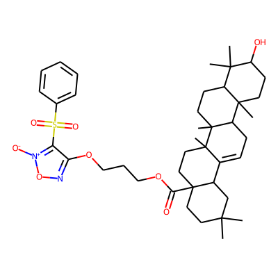 CC1(C)CCC2(C(=O)OCCCOc3no[n+]([O-])c3S(=O)(=O)c3ccccc3)CCC3(C)C(=CCC4C5(C)CCC(O)C(C)(C)C5CCC43C)C2C1| HBA: | 10 | RingCount: | 7 |