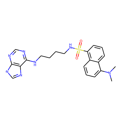 CN(C)c1cccc2c(S(=O)(=O)NCCCCNc3ncnc4c3N=C[N]4)cccc12| HBA: | 9 | RingCount: | 4 |