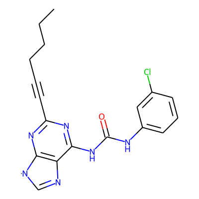 CCCCC#Cc1nc2c(c(NC(=O)Nc3cccc(Cl)c3)n1)N=C[N]2| HBA: | 7 | RingCount: | 3 |
