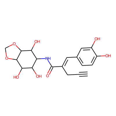 C#CCC(=Cc1ccc(O)c(O)c1)C(=O)NC1C(O)C(O)C2OCOC2C1O| HBA: | 9 | RingCount: | 3 |