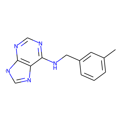 Cc1cccc(CNc2ncnc3c2N=C[N]3)c1| HBA: | 5 | RingCount: | 3 |