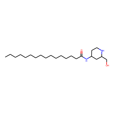 CCCCCCCCCCCCCCCC(=O)NC1CCNC(CO)C1| HBA: | 4 | RingCount: | 1 |