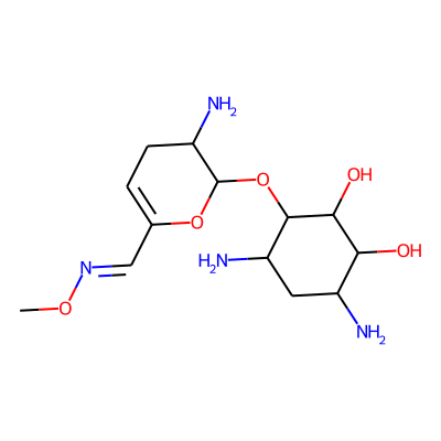CN[C@@H]1[C@H](O)[C@H](O[C@H]2[C@H](N)C[C@@H](N)[C@@H](O[C@@H]3OC(C=NOC)=CC[C@H]3N)[C@H]2O)OC[C@]1(C)OAglycone: