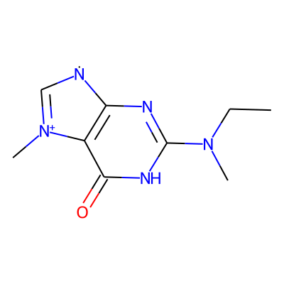 CCN(C)c1nc2c(c(=O)[nH]1)[N+](C)=C[N]2| HBA: | 6 | RingCount: | 2 |