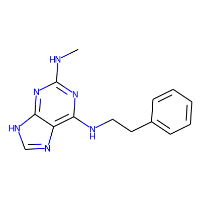 CNc1nc(NCCc2ccccc2)c2nc[nH]c2n1| HBA: | 6 | RingCount: | 3 |