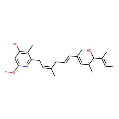 CC=C(C)C(O)C(C)C=C(C)C=CCC(C)=CCc1nc(OC)cc(O)c1C| HBA: | 4 | RingCount: | 1 |