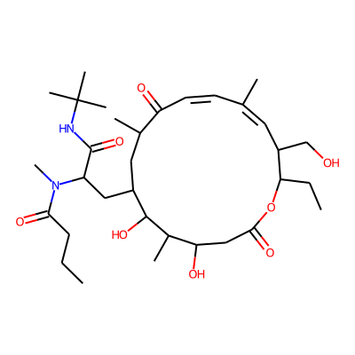 CCCC(=O)N(C)C(CC1CC(C)C(=O)C=CC(C)=CC(CO)C(CC)OC(=O)CC(O)C(C)C1O)C(=O)NC(C)(C)CSugarmoiety: