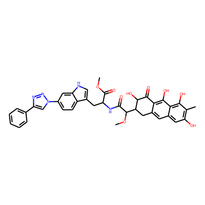 COC(=O)C(Cc1c[nH]c2cc(-n3cc(-c4ccccc4)nn3)ccc12)NC(=O)C(OC)C1Cc2cc3cc(O)c(C)c(O)c3c(O)c2C(=O)C1O| HBA: | 14 | RingCount: | 7 |