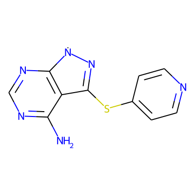 Nc1ncnc2c1C(Sc1ccncc1)=N[N]2| HBA: | 6 | RingCount: | 3 |