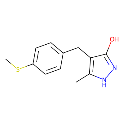 CSc1ccc(Cc2c(O)n[nH]c2C)cc1| HBA: | 3 | RingCount: | 2 |