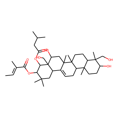 CC=C(C)C(=O)OC1C(OC(=O)CC(C)C)C2(CO)C(O)CC3(C)C(=CCC4C5(C)CCC(O)C(C)(CO)C5CCC43C)C2CC1(C)C| HBA: | 8 | RingCount: | 5 |