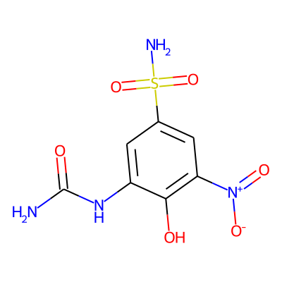 NC(=O)Nc1cc(S(N)(=O)=O)cc([N+](=O)[O-])c1O| HBA: | 10 | RingCount: | 1 |