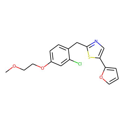 COCCOc1ccc(Cc2ncc(-c3ccco3)s2)c(Cl)c1Sugarmoiety: