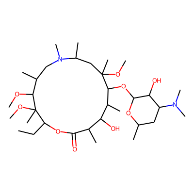 CCC1OC(=O)C(C)C(O)C(C)C(OC2OC(C)CC(N(C)C)C2O)C(C)(OC)CC(C)N(C)CC(C)C(OC)C1(C)OC| HBA: | 11 | RingCount: | 2 |