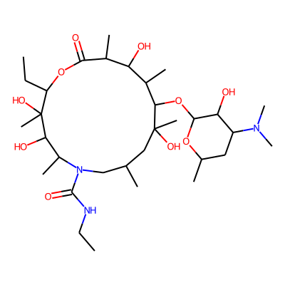 CCNC(=O)N1CC(C)CC(C)(O)C(OC2OC(C)CC(N(C)C)C2O)C(C)C(O)C(C)C(=O)OC(CC)C(C)(O)C(O)C1C| HBA: | 13 | RingCount: | 2 |