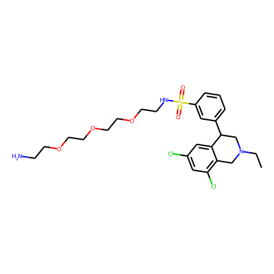 CCN1Cc2c(Cl)cc(Cl)cc2C(c2cccc(S(=O)(=O)NCCOCCOCCOCCN)c2)C1| HBA: | 8 | RingCount: | 3 |