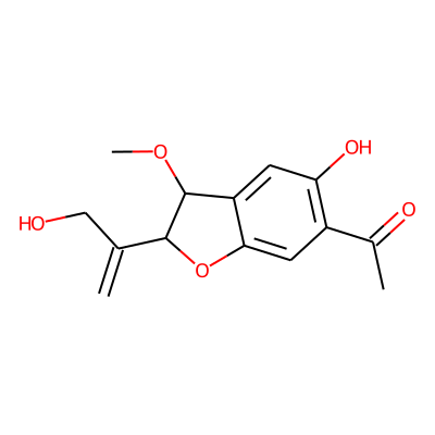 C=C(CO)C1Oc2cc(C(C)=O)c(O)cc2C1OC| HBA: | 5 | RingCount: | 2 |